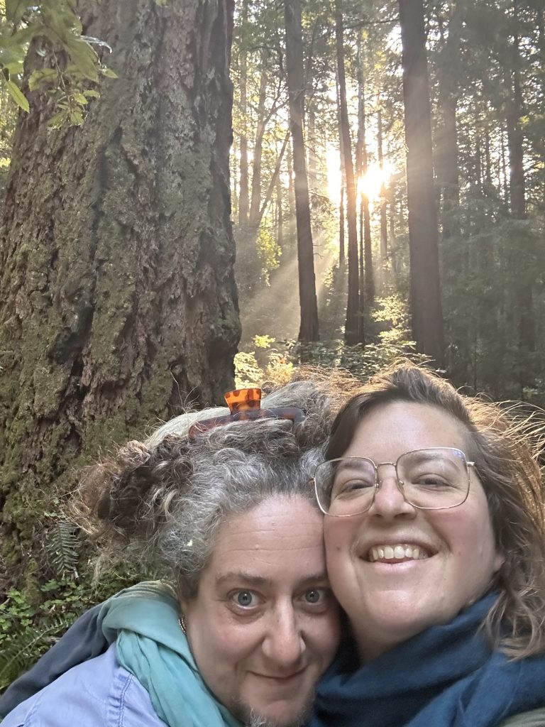 Jessica and Kate with Redwoods in Northern California, March 2026